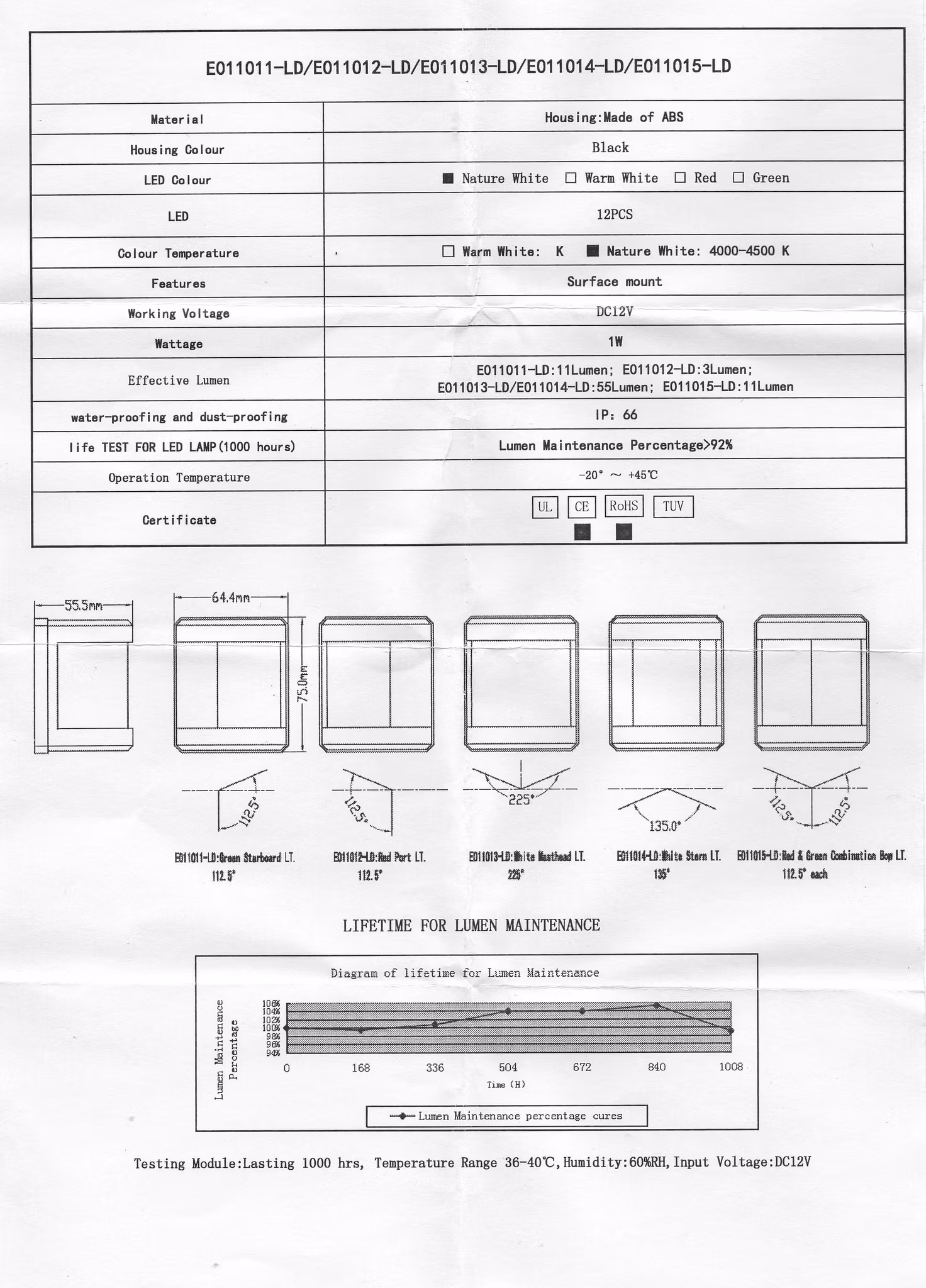 Höjd 75mm, bredd 66,4mm, djup 55,5mm Riktigt snygg lanterna med 1W LED-lampaFinns som komplett set: babord, styrbord, topp- och akterlanterna. Även kombila