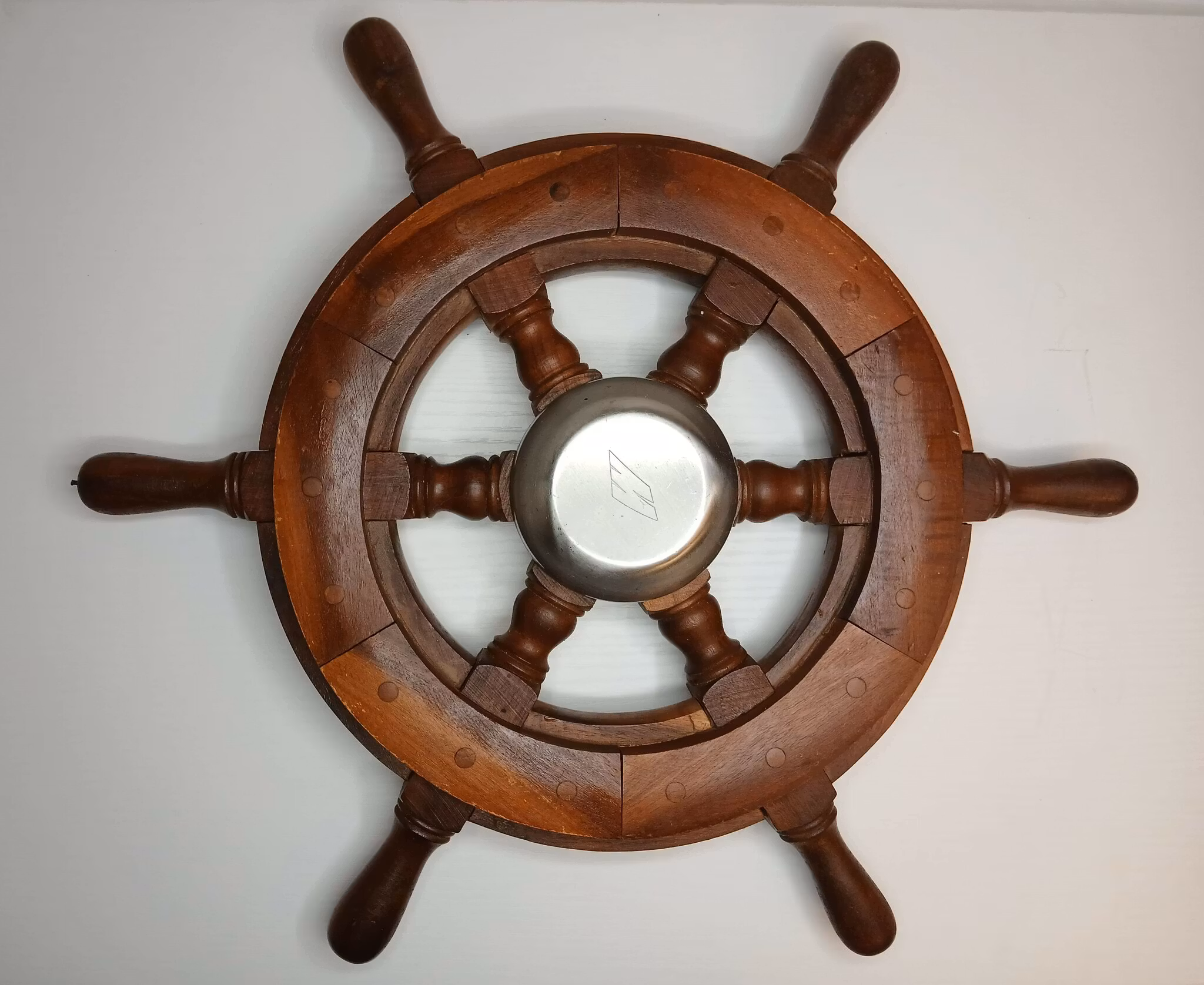 Solid båtratt i fint skick. Ytterdiameter 400 mm, navhål 40 mm. Spår för kil