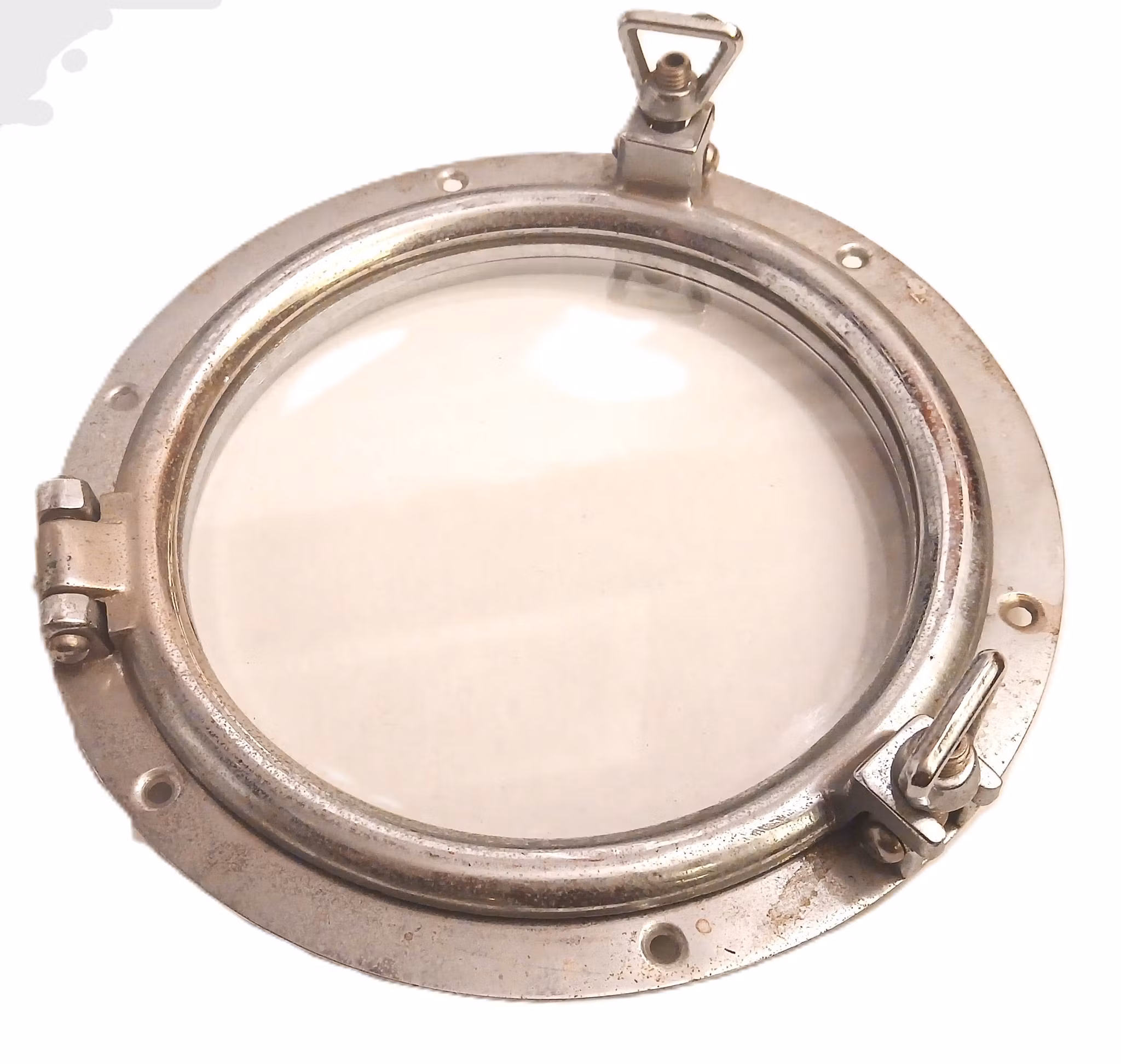 En ventil med klass! Antik och helt intakt.Yttre diameter: 180mmDiameter glas: 130mmTjocklek ram: 4mmDjup inbyggnad: 13mm