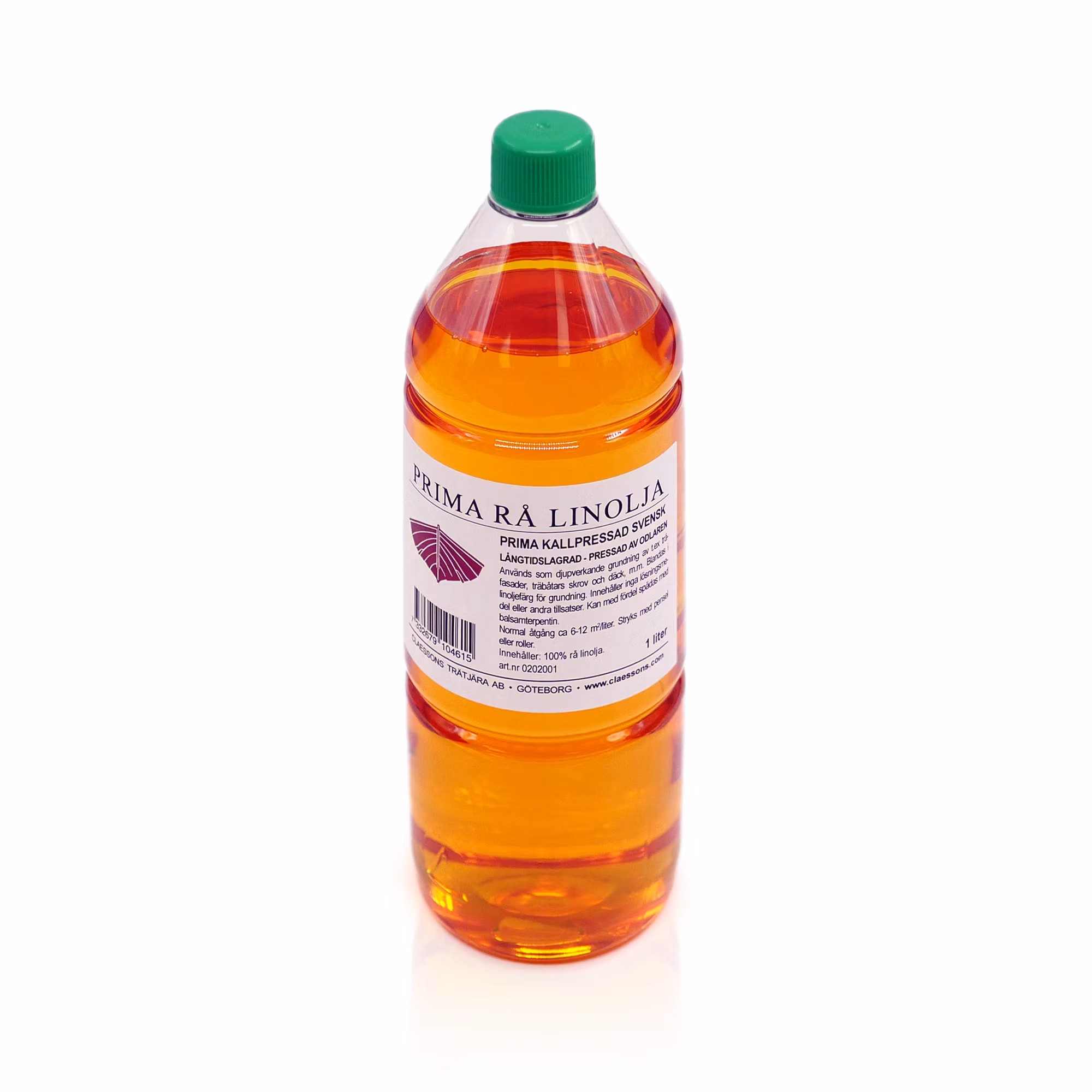 Extra ren och ljus, långtidslagrad kallpressad rå linolja. Odlad och framställd i Sverige och utvunnen genom skonsam pressning under låg temperatur. Linoljan är ljus och ren och används för all form av djuppenetrerande oljning, impregnering och grundning. Fyller och mättar trä. Vid utomhusbruk och när de behandlade ytorna skall målas blandas oljan med fördel med 50%balsamterpentinför djupare inträngning och kortare torktid. Inomhus hettas oljan upp om möjligt. Rå linolja används till all form av oljningen där träföremål skall skyddas mot smuts, uttorkning eller bara ges en vacker, matt yta. Linolja kan också användas till att fräscha upp gamla mattade plastlister, o.dyl. Gnid in plasten med hjälp av en trasa, torka bort eventuellt överskott. Samma behandling av järn ger ett visst rostskydd, även utan att det bränns in. Keramiska material som klinker och tegel kan ytbehandlas med rå eller kokt linolja. Åtgång ca 6-12 m2/liter.